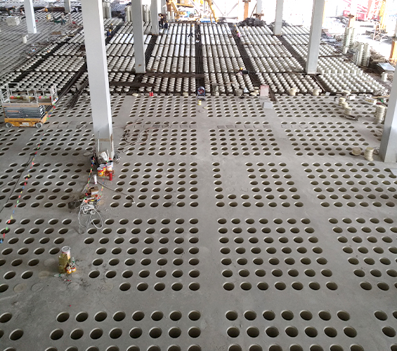 圓形華夫板的生產工藝具有以下優勢:1.保證成孔準確與樓板平整度采用的生產工藝,使用標準模板...